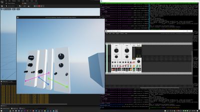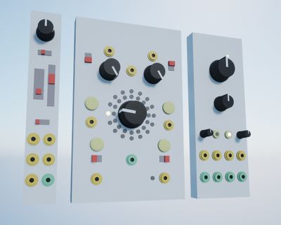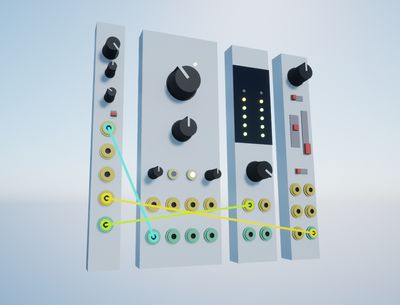 All that’s left, then, is to put it all together. I’ve already been sending over additional data for the params, like min/default/max value, and min/max angle for the knobs, so I go ahead and rotate the knobs based on their values as well. Cables remain simple debug lines for now, but it’s looking pretty decent!